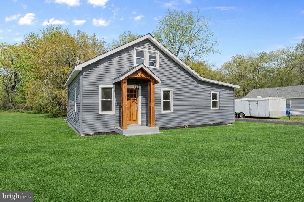 From the moment you arrive, you’ll feel the magnetism of a stylish property that truly stands apart. Imagine pulling into your fresh asphalt driveway beside a newly renovated home, where a meticulously hand-built stained-wood awning invites you into a warm, modern living experience. The exterior palette whispers modern, proud, timeless colors that reflect a design built to last. A new roof, rich blue-toned vinyl siding, a custom stained-finish front door, and brand-new windows create a striking first impression. The landscaped front yard is finished with fresh mulch and bordered by rounded pressure-treated timber, offering both polish and durability. Step inside to an inviting open living room wrapped in bright white wainscoting, accented by soft gray walls and a bold forest green custom panel molding that highlights the home’s craftsmanship. This attention to detail flows seamlessly throughout, with thoughtfully placed lighting that transitions between soft white and cool white at the flip of a switch. The kitchen is both stylish and functional, featuring new cabinetry, a coral green backsplash, smooth wooden countertops, stainless steel appliances, and elegant gold fixtures. These gold accents continue into the bathrooms, adding a refined, luxurious touch. The main bathroom offers a tub-shower combination, a floating sink, and cohesive molding that ties the design together throughout the home. The first floor boasts a private-feeling primary suite that spans much of the home, complete with a spacious walk-in closet and its own bathroom featuring a standing shower. A second generously sized, fully carpeted bedroom sits nearby. Upstairs, you’ll find two additional bedrooms positioned on either side of the staircase, along with a utility room that houses a new HVAC system and provides extra storage space. Off the mudroom, a dedicated laundry area offers space for folding and organization, conveniently located across from a new hot water heater. Out back, the property opens up extensively, surrounded by mature trees that provide exceptional shade and a sense of privacy. It’s a setting that feels peaceful and connected to nature, yet remains conveniently located just minutes from local favorites like Di Paolo's Italian Ristorante, with easy access to major routes including Rt. 130 and I-295 for commuting to Wilmington or Philadelphia. Come experience this thoughtfully crafted home for yourself—schedule your showing today.