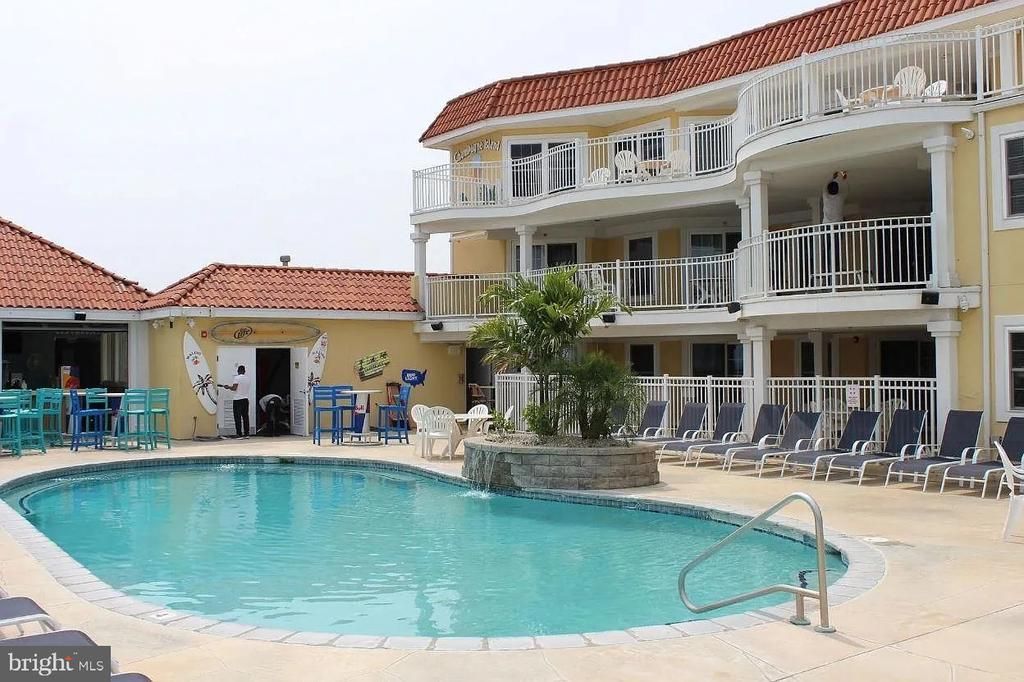 The ultimate Jersey Shore lifestyle in this stunning one-bedroom, one-bathroom condotel at the Champagne Island Resort, perfectly situated just one block from the pristine North Wildwood beaches. This turn-key seasonal rental is fully furnished and features a modern kitchen with granite countertops and stainless steel appliances, all leading out to a private deck with refreshing water views. Guests enjoy premier amenities including a community pool with an on-site tiki bar, the popular Flip Flopz Bar & Grill, elevator access, and a dedicated parking space. Located in the heart of the entertainment district, you're just steps away from legendary local festivals and nightlife, making this an incredible opportunity for a high-performing investment.