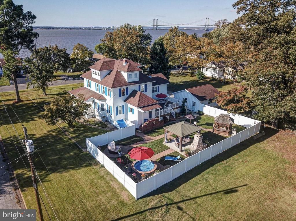 This stunning residence overlooking the Delaware River offers a perfect blend of timeless character and modern updates, making it truly move-in ready. With its generous living spaces, thoughtfully restored details, and inviting backyard retreat, this landmark property is a rare find you won’t want to miss. Originally built in 1920 by the Brandriff family, this historic Pennsville treasure has been beautifully expanded and updated over the years, preserving its craftsmanship while enhancing it with modern conveniences. A welcoming wrap-around porch sets the stage, leading you into a breathtaking foyer that immediately captures the storybook charm of the home. Just off the entryway, you’ll find a cozy bar/lounge, while original chestnut pocket doors open to a spacious gathering room — ideal as a formal dining area or game room. The large breakfast room flows seamlessly into the kitchen, complete with granite countertops and stainless-steel appliances. A few steps up, a warm and inviting living room features a gas fireplace and sweeping views of the river and bridge, with access to a front deck where you can enjoy cool breezes and breathtaking sunsets. The second floor offers a large landing, three comfortable bedrooms, a full bath, and a convenient laundry room. The third level provides even more living space, including a generous sitting area, additional bedroom and bathroom, abundant storage, and a flexible office/bonus room showcasing magnificent river views. The finished basement adds yet another layer of versatility, with a half bath (designed to be converted to a full bath if desired), a mirrored gym with padded flooring, workout equipment, and a sauna, plus a workbench and spacious storage areas. Outside, French doors from the breakfast room open to a large deck that leads to a gazebo with a brick fireplace and pavilion-style seating, enclosed by a privacy fence for ultimate relaxation. Beyond the fence, you’ll find a detached two-car garage (in addition to the attached one-car garage), two sheds, and a generous side yard — all perfectly complementing this remarkable piece of history. This Pennsville landmark is more than just a home — it’s a lifestyle of space, charm, and comfort. Don’t miss the chance to make it yours. Schedule your private tour today!