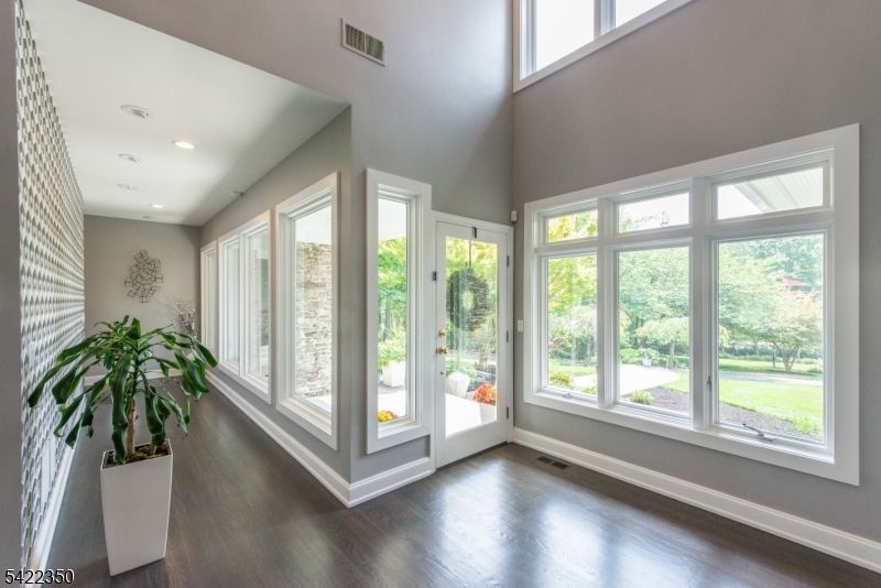 Experience sophisticated luxury in this stunning contemporary New York-style penthouse-inspired home, set in the serene suburbs of New Jersey. This exceptional residence showcases modern design, high-end finishes, and impeccable attention to detail throughout. Enter through a dramatic two-story foyer with striking lighting, glass panels, and sleek stainless steel railings. The elegant dining room features a custom wine wall, perfect for entertaining. The designer chef's kitchen offers quartz countertops, custom cabinetry, and premium finishes. The sunken family room is filled with natural light from walls of glass and features a built-in gas fireplace. Select rooms highlight accent walls with custom 3D detailing, adding a unique and modern touch. Step outside to a resort-style backyard with multiple seating areas, landscaped grounds, and space for play or relaxation. The finished lower level is an entertainer's dream with a private movie theater, cigar lounge, and home gym. A dedicated home office provides the perfect work-from-home setup. The luxurious primary suite features a custom dressing area with built-in closets and display storage. With 5 bedrooms and 5.5 baths, this home offers the perfect blend of comfort, style, and upscale living.