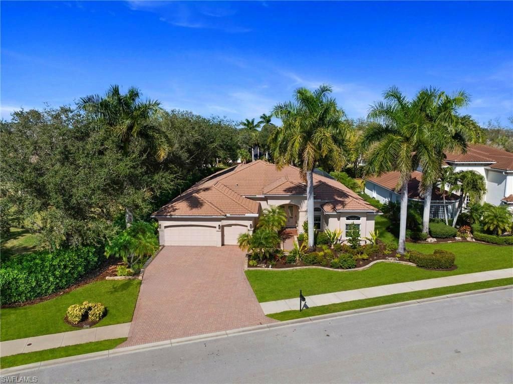 Located within the gated community of Belle Lago in Estero, this beautifully maintained Royale Model showcases recent upgrades and effortless, move-in-ready appeal on a spacious, private lot. Offering 4 bedrooms, a study/den and 3.5 baths, the thoughtfully designed floor plan provides generous space for everyday living and welcoming guests. Inside, a stunning 2025 kitchen remodel delivers a fresh, modern aesthetic with updated cabinetry, designer finishes, and contemporary fixtures, creating a seamless blend of style and functionality with natural gas for cooking. The open layout flows comfortably for both entertaining and relaxed daily living. Major system upgrades provide exceptional peace of mind, including new impact resistant windows and doors, new A/C system (June 2024), new pool heater (2024), new pool pump (2025), and a new garage door opener (2025). With significant improvements already completed, this home offers both style and confidence. Step outside to an expansive screened lanai designed for true Florida living, featuring a heated pool and spa, generous covered seating areas for shaded relaxation, and a pizza oven ideal for outdoor entertaining. Beyond the lanai, the property offers rare and hard-to-find backyard space, providing room for play, pets, and added privacy. Living in Belle Lago means enjoying a resort-inspired lifestyle surrounded by scenic lakes, lush landscaping, walking trails, and a beautifully appointed clubhouse with fitness center, tennis, pickleball, and an active social calendar. Belle Lago residents enjoy optional membership opportunities at neighboring The Vines at Estero Country Club, accessible through a private community gate. Ideally located between Fort Myers and Naples, Belle Lago offers quick access to RSW International Airport, Coconut Point Mall, Hertz Arena, FGCU and the white sandy Gulf beaches, making this home as convenient as it is refined.