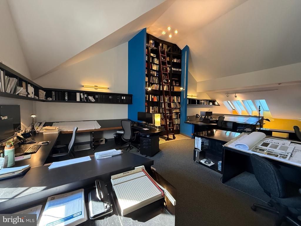 - 4,000 SF fully renovated office condominium available for sale - Currently occupied by an architectural firm relocating to a larger nearby office. - This exceptionally well-appointed space showcases a comprehensive interior buildout featuring custom mahogany millwork and trim, glass-top and wood workstations, designer lighting, and thoughtfully curated finishes throughout, delivering a sophisticated, turnkey office environment. - Second floor layout features a large, inviting reception area, three private offices, two dramatic curved rooms, abundant storage/shelving, and a kitchenette. - One curved room serves as a lunch room/meeting room and is adjacent to a kitchenette. - Second curved room functions as a conference room with media capabilities, featuring floor-to-ceiling backlit stained glass panels - a true signature space for client presentations. The space could also be easily converted to a private office. - Third floor offers 11 work stations, an expansive open studio with soaring vaulted ceilings, bold accent walls, skylights, and pendant lighting - ideal for collaborative or creative work. - Built-in floor-to-ceiling bookshelves with a rolling library ladder add character and storage on the 3rd floor - can be removed to open additional floor space if desired. - Renovated restrooms with modern fixtures, backlit mirror, and decorative ceiling light. - Updated common area entry stairwells enhance the building’s overall appeal. - Prime Route 1 (Baltimore Pike) location at the signalized intersection of Routes 1 & 322 in Glen Mills, Delaware County. 40 minutes to Center City Philadelphia; 22 minutes to Philadelphia International Airport (PHL). - Excellent suburban connectivity with easy access to West Chester, Media, Concordville, and the greater Main Line corridor. - High-visibility corridor with strong surrounding retail, dining, and professional services amenities. - Ideal for architecture, contractor, engineering, law, financial services, or other office users seeking a turnkey space.