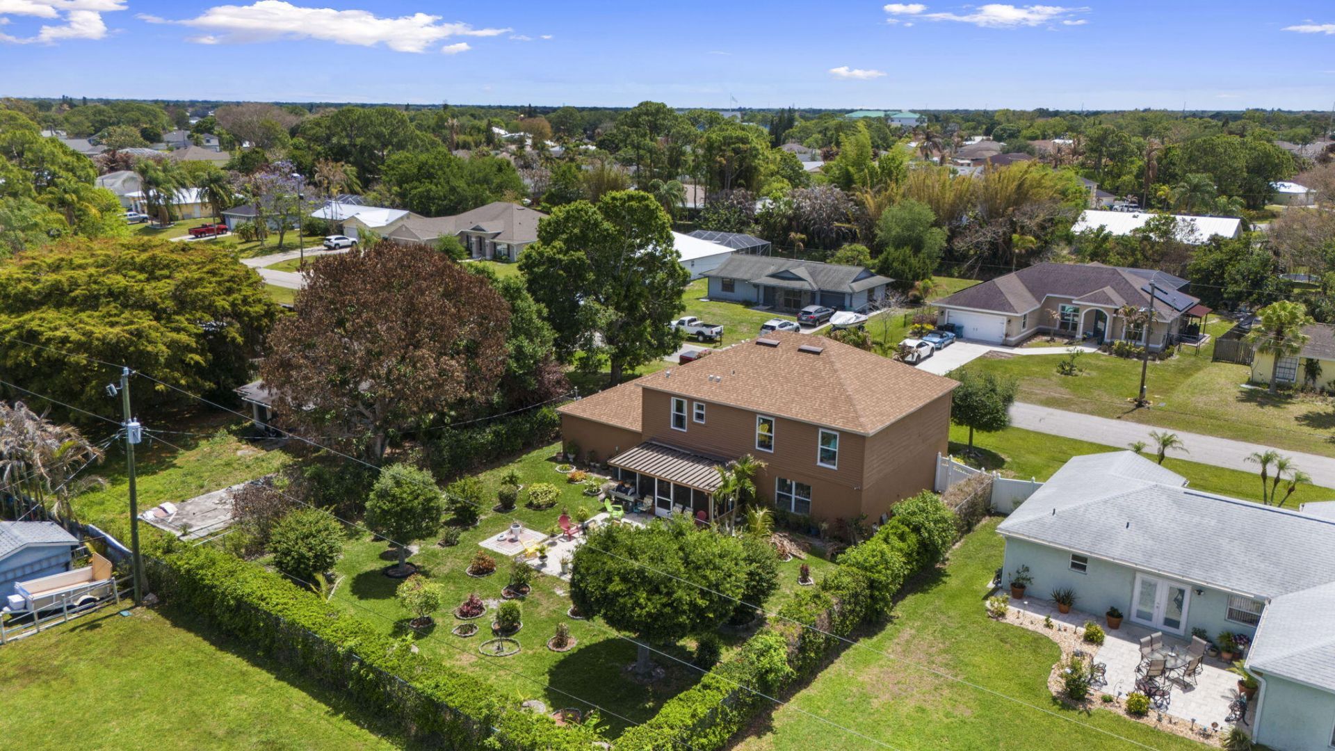 Stunning two-story home featuring 4 bedrooms, 3 bathrooms, and exceptional tropical curb appeal both front and the back. From the moment you arrive, mature royal palms and lush, manicured landscaping create a warm and inviting first impression. Step inside and you're greeted by a two-story foyer, arched transom window overhead, porcelain tile flooring, and a staircase with hand-painted decorative tile risers that set an elegant tone throughout the home. The main level features a seamless open-concept design with two distinct living areas and a formal dining room ideal for special occasions. Multiple access points create effortless flow between the kitchen, dining, and living spaces. The kitchen is beautifully appointed with granite countertops, a distinctive penny-round backsplash, stainless steel appliances, a center island with pendant lighting, and abundant oak cabinetry. Head upstairs and the hallway opens to multiple bedrooms and spaces, filled with natural light. The primary is privately tucked away from the secondary bedrooms and features plush carpeting, a soaking tub, an extended vanity, and a generous walk-in closet. Out back, a fully fenced yard lined with mature shrubs creates a private outdoor retreat. A spacious paver patio and covered screened-in porch provide multiple areas for relaxing and entertaining, while lush garden beds filled with tropical plantings add the perfect finishing touch for those with a green thumb. Located just minutes from major highways, medical facilities, shopping centers, and dining, with a short drive to the beautiful beaches of Hutchinson Island.