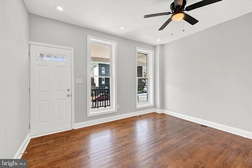 Welcome to 2423 Denison Street — a charming Baltimore, end of group, rowhome that blends classic character with modern touches. This 3-bedroom, 1.5-bath home features beautiful hardwood floors throughout, creating a warm and cohesive feel from top to bottom. The main level offers a spacious living room, a dedicated dining area, and a well-appointed kitchen complete with stainless steel appliances and a stylish subway tile backsplash. A convenient powder room rounds out the main floor. Upstairs, you’ll find three comfortable bedrooms and a full bathroom, providing a functional layout for everyday living. The full, unfinished basement offers plenty of room for storage or the potential to customize additional living space. Enjoy outdoor living with a welcoming front porch, a rear deck perfect for entertaining, and a fully fenced concrete patio for added privacy. On-street parking adds convenience in this city location. A great opportunity to own a move-in ready home with room to make it your own!