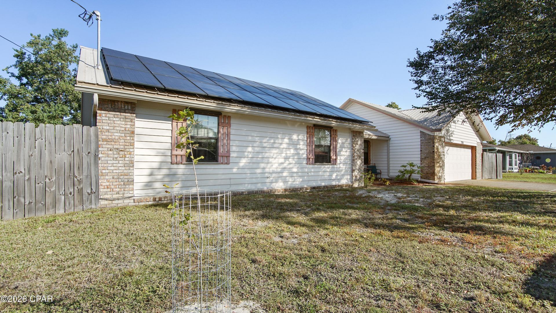 Well-maintained 3 bedroom, 2 bathroom single-family home in the heart of Panama City, Florida. This move-in ready property offers a spacious layout with an oversized living area featuring a fireplace, a two-car garage, and a large fenced backyard with a storage shed. The home comes equipped with paid-off solar panels for reduced energy costs and custom hurricane shutters for added storm protection -- two high-demand features that provide long-term value and peace of mind. Major updates include a roof replaced in 2019 and a water heater approximately 3 to 4 years old. Conveniently located close to shopping, restaurants, and everyday amenities, with easy access to the beach approximately 15 minutes away. A solid, well-kept home with meaningful upgrades already in place -- ready for its next owner.